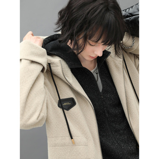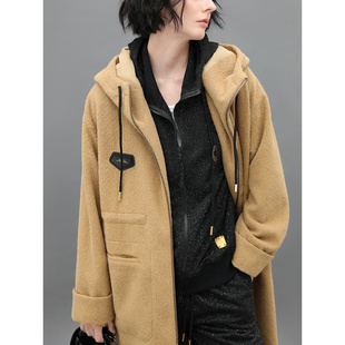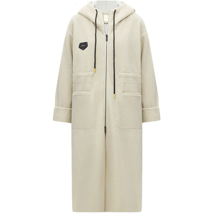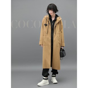 毛呢外套WL527 COCOBELLA肌理感短绒连帽大衣女过膝长款 品牌特卖