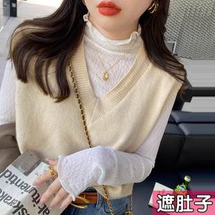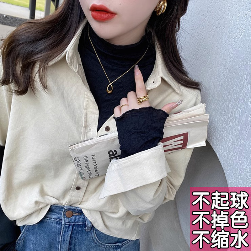 半高领网纱洋气内搭蕾丝衫 女2026新款 加绒上衣胖mm秋冬 打底衫 大码