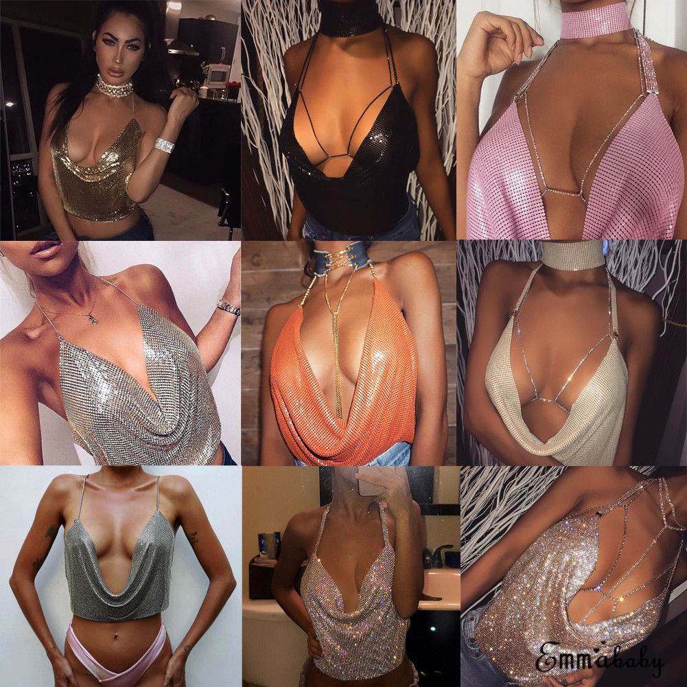 Sequined Strapless Solid Loose Tops tyle Backless Sleeveless