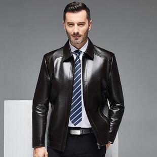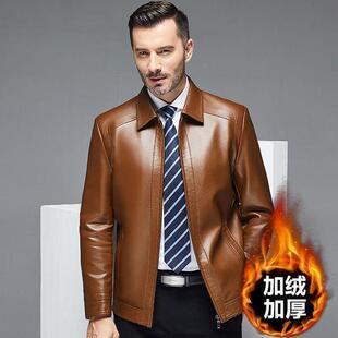 爸爸装 真皮皮衣男秋冬装 加绒加厚中年皮夹克翻领外套春秋立领大码