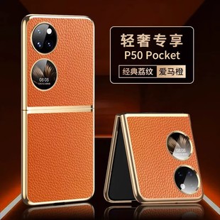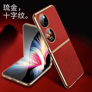 适用华为p50pocket手机壳新款 保护套全包防摔折叠屏p60宝盒pockets男高档艺术pocket2硬壳女新年外壳真皮手感