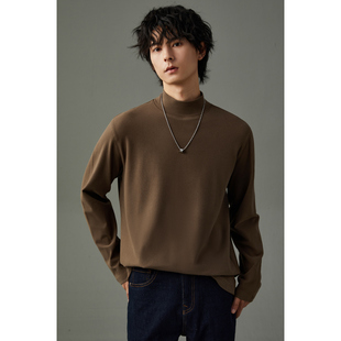百搭内搭体恤 T恤半高领纯色打底衫 w2x秋冬季 加厚双面德绒中领长袖