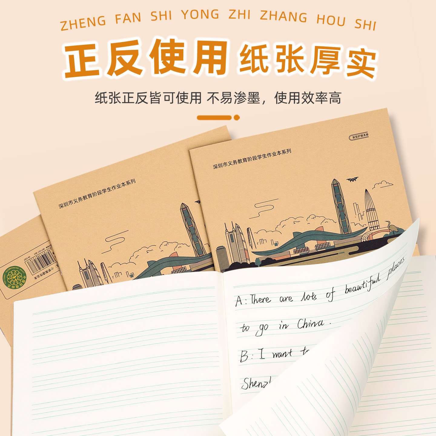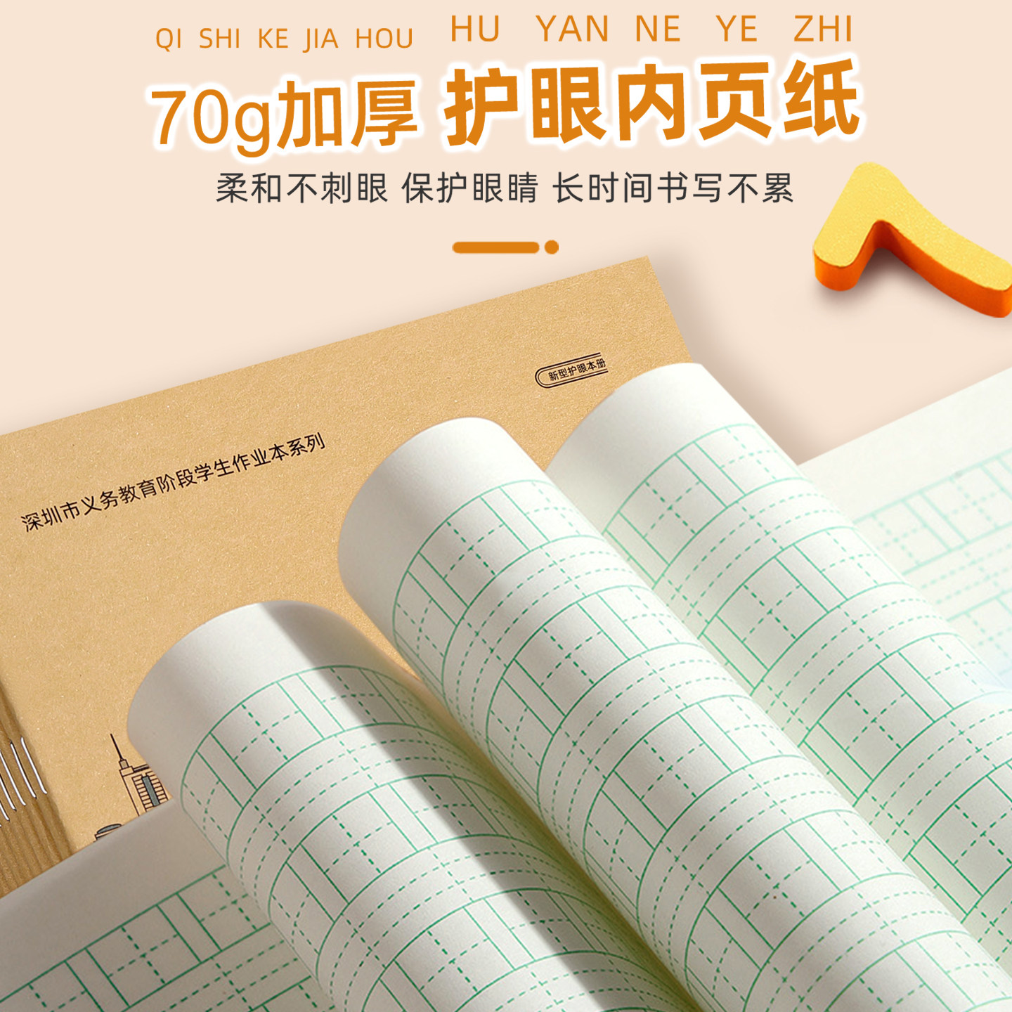 深圳市小学生作业本新版 登记拼音田字格本小学数学英语练习簿写字写话课文作文本子统一专用三到六年级牛皮纸