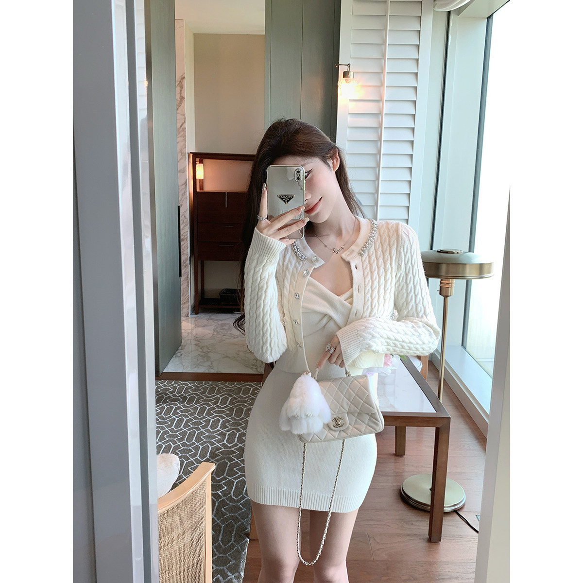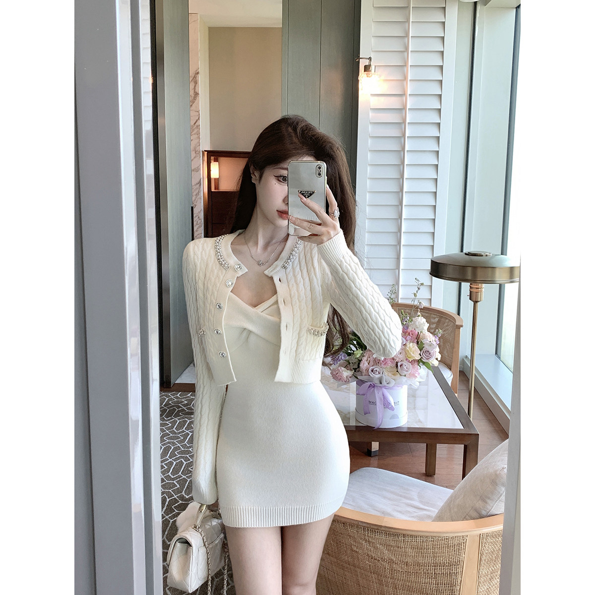 针织吊带连衣裙女冬季 灰尘邓邓 内搭长裙包臀裙气质裙子 现货