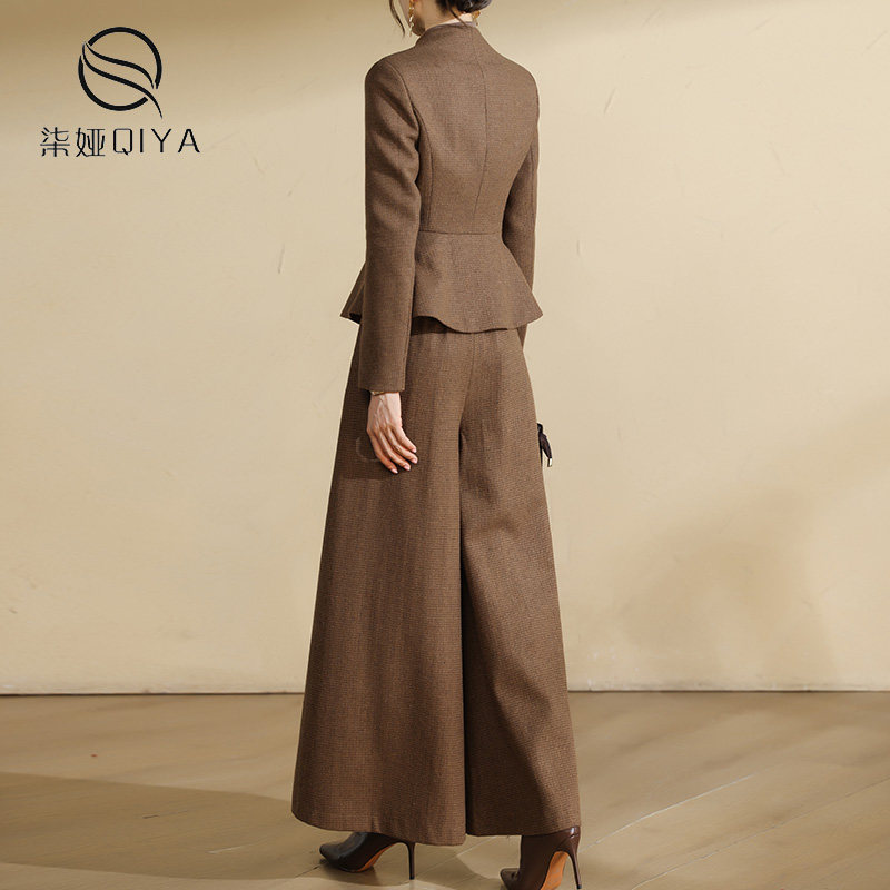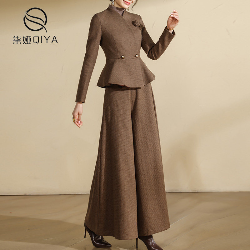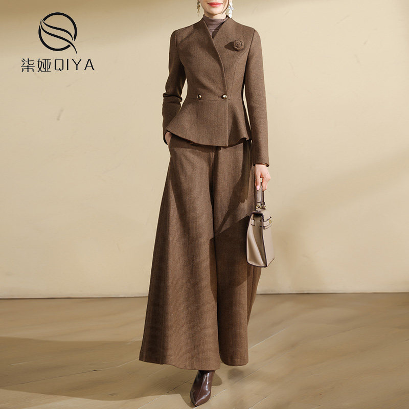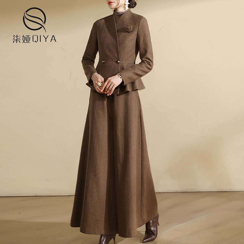 气质休闲减龄羊毛呢两件套裙裤 棕色时尚 2025年新款 女秋冬季 套装