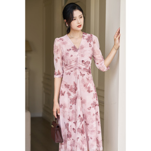 茶歇清新连衣裙收腰显瘦气质a字裙女3711 法式 米思阳2025春季 新款