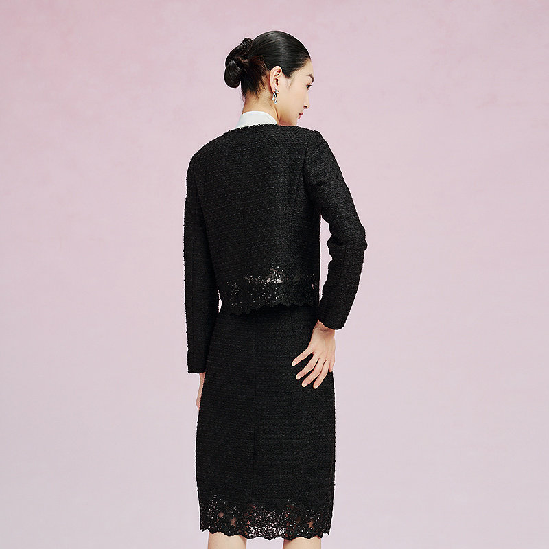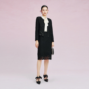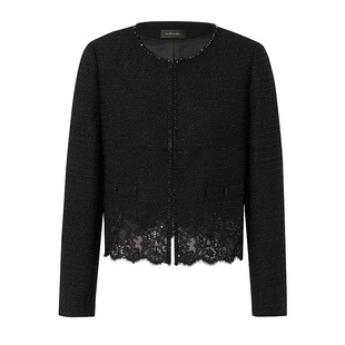 香风修身 法式 通勤新款 圆领气质黑色外套 Koradior拉珂蒂女春季