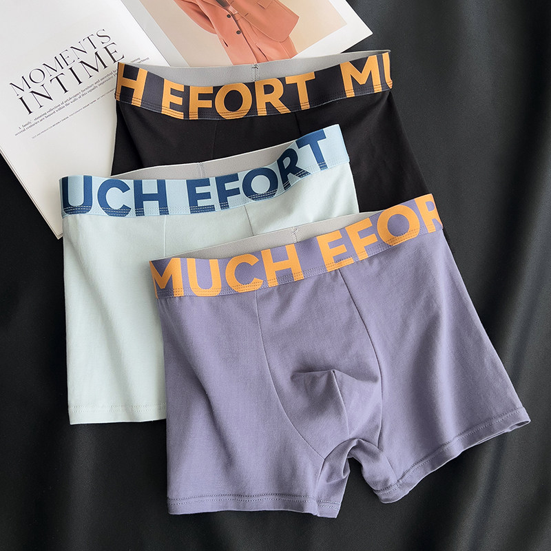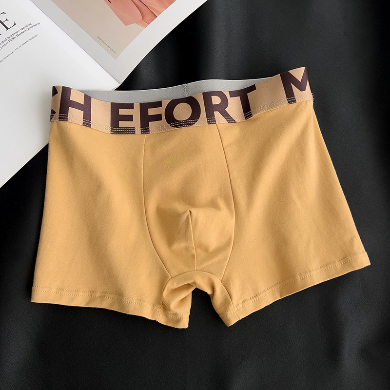 纯棉内裤 中高腰U凸平角裤 纯色简约时尚 四角短裤 运动休闲个性 男士
