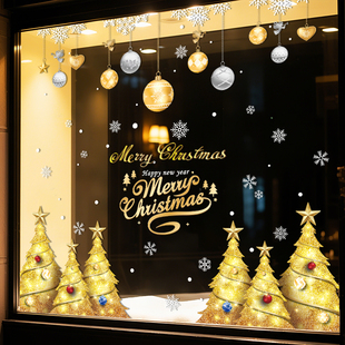 圣诞节装 饰品静电贴橱窗玻璃门墙窗户贴纸贴画圣诞老人树窗贴用品