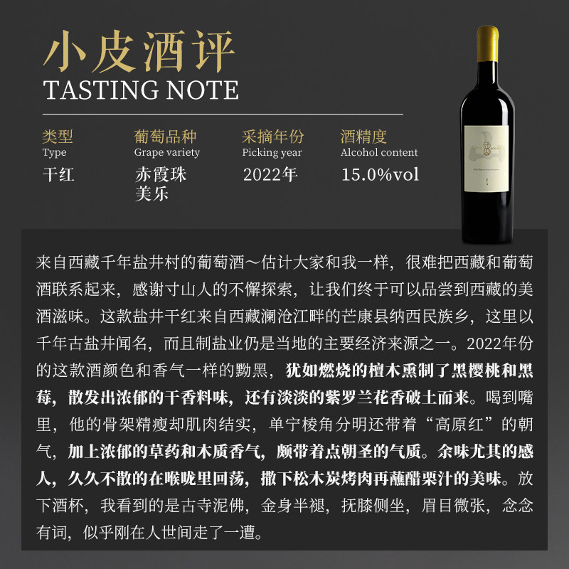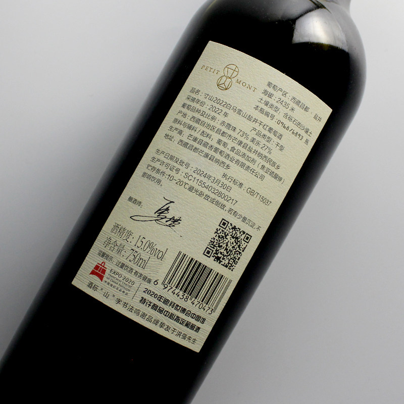 2022年 寸山白马雪山盐井干红葡萄酒750ml 吃烤肉就喝这款