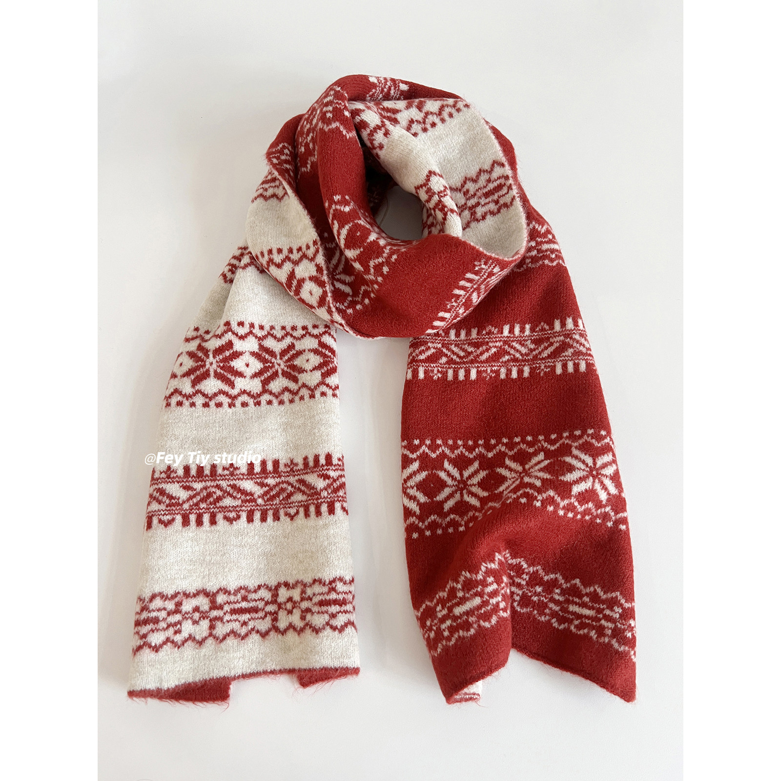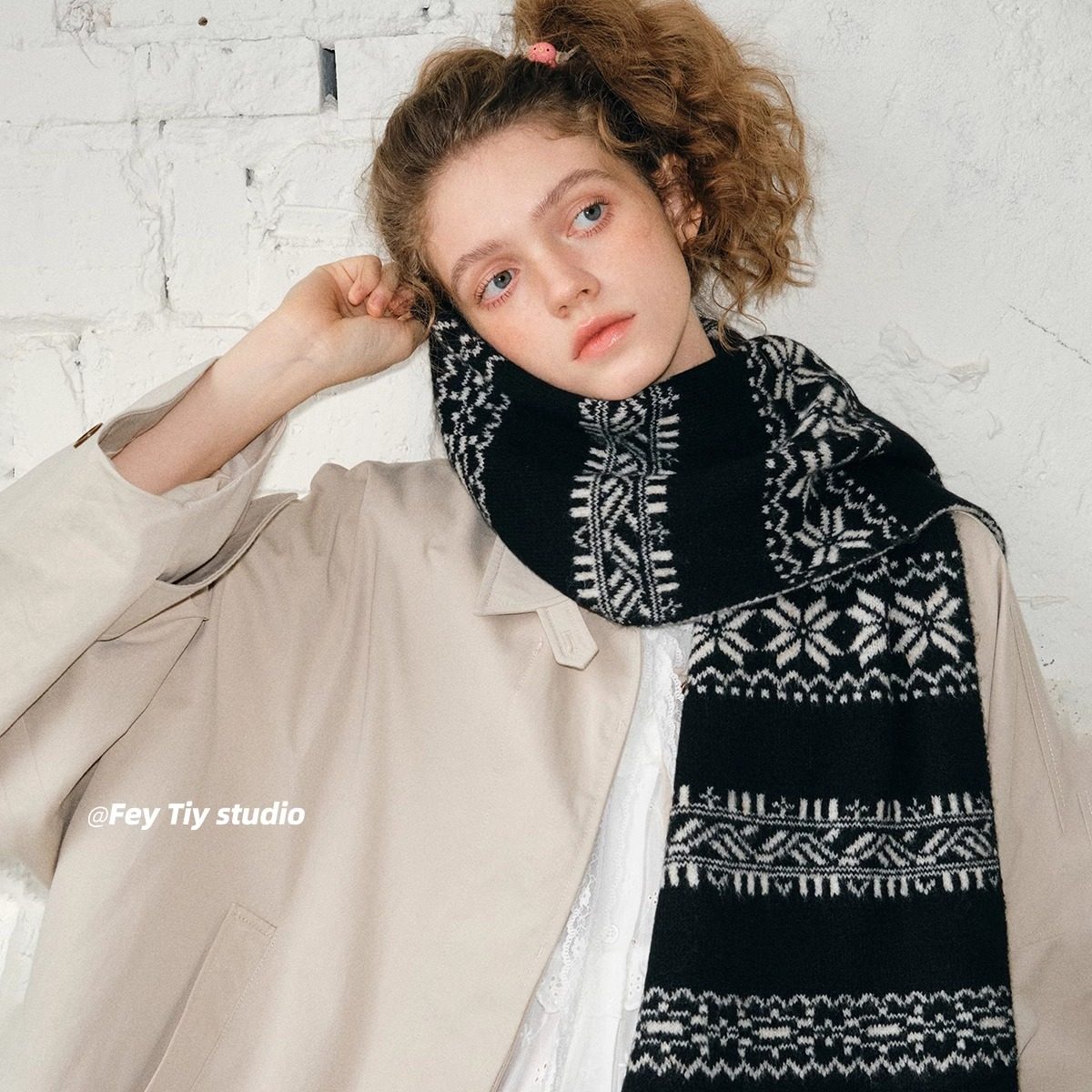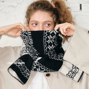 百搭仿羊绒冬季 新款 保暖围脖 高级感双面色复古雪花围巾女 feytiy