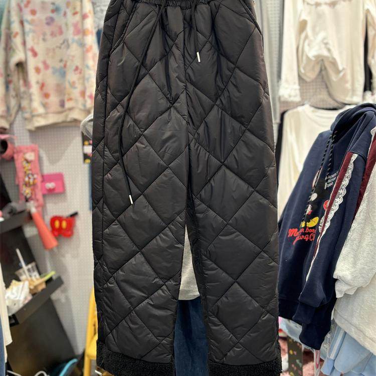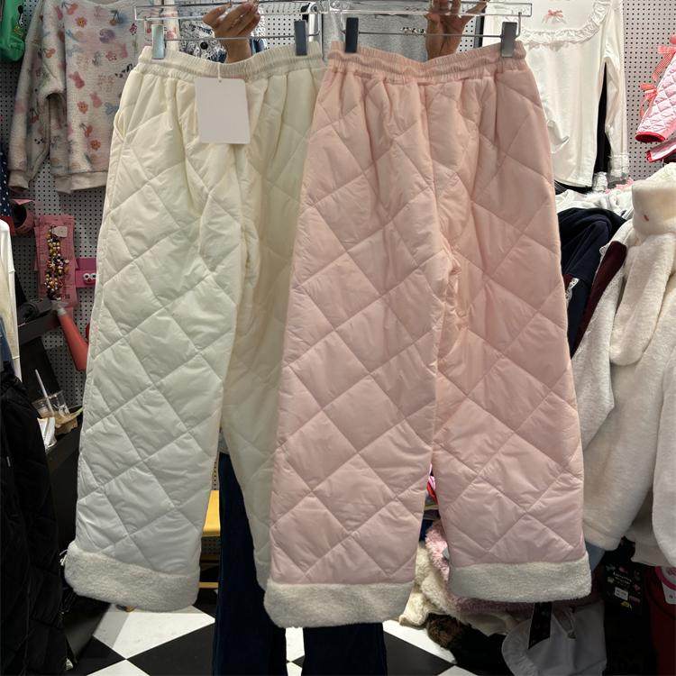 柔软舒适保暖毛毛边长裤 夹棉裤 女 纯色休闲裤 韩国东大门冬季