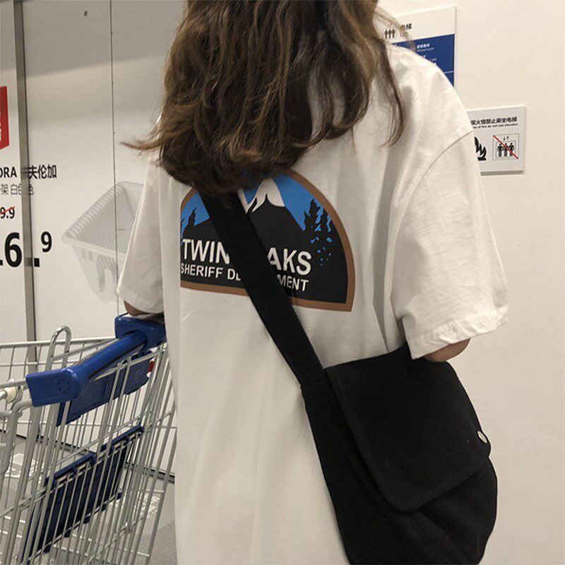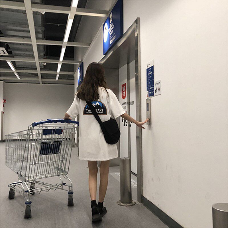 韩版 短袖 女式 中长款 T恤女宽松学生情侣 新款 前美洋正肩印花夏装