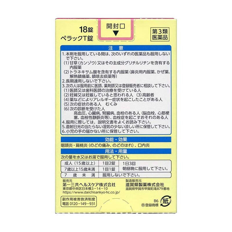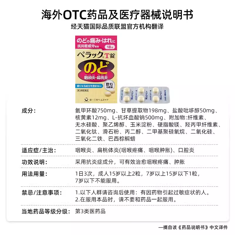 进口第一三共扁桃体咽炎片咽痛缓解感冒口腔咽喉肿痛18粒
