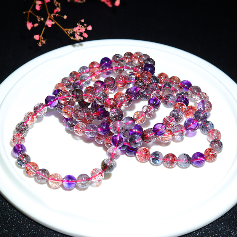 天然水晶多宝手串单珠手链男女钛晶绿发晶超七极光23