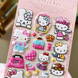 凯蒂猫kt猫kitty卡通立体粘贴贴纸女孩儿童装 饰贴可爱小贴画 扮装