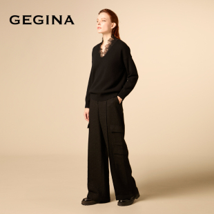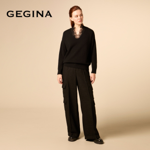 女蕾丝羊绒毛衣商场同款 GEGINA吉吉娜V领两件套毛衫 绵羊毛