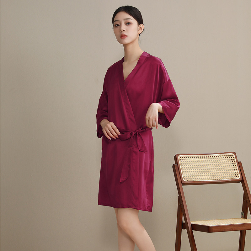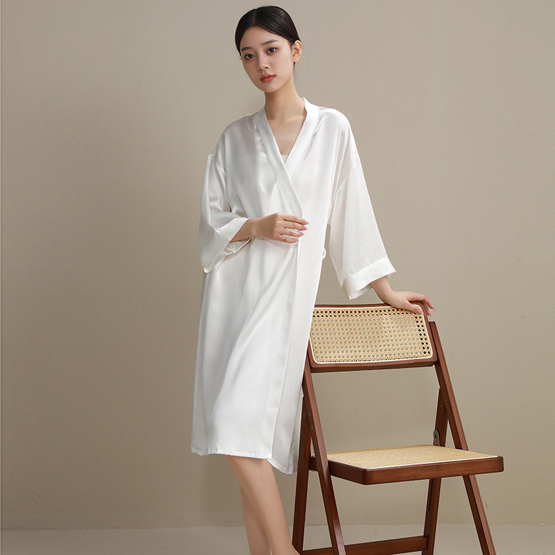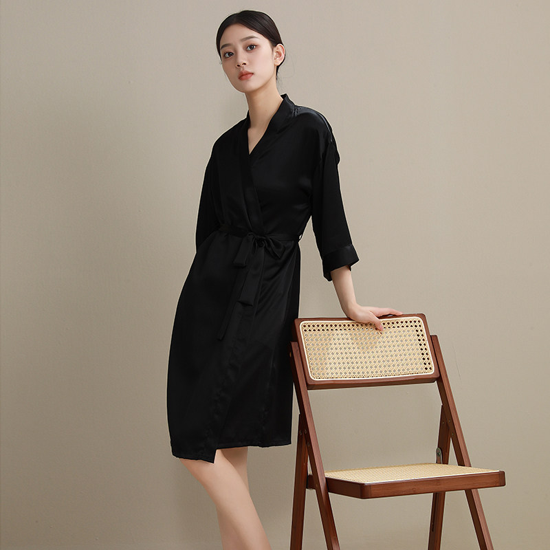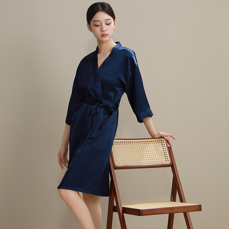 真丝睡袍女士高级纯色睡衣外披100%桑蚕丝家居服性感睡裙丝绸浴袍
