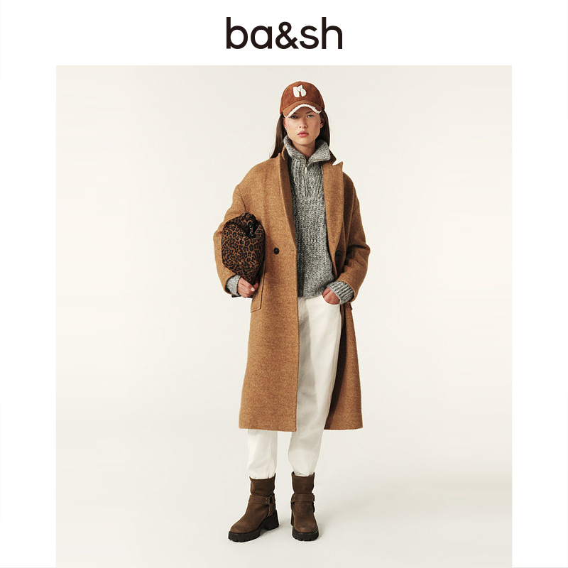 毛呢大衣1H24TAO 中长款 bash秋冬摩卡慕斯棕羊毛混纺法式 复古经典
