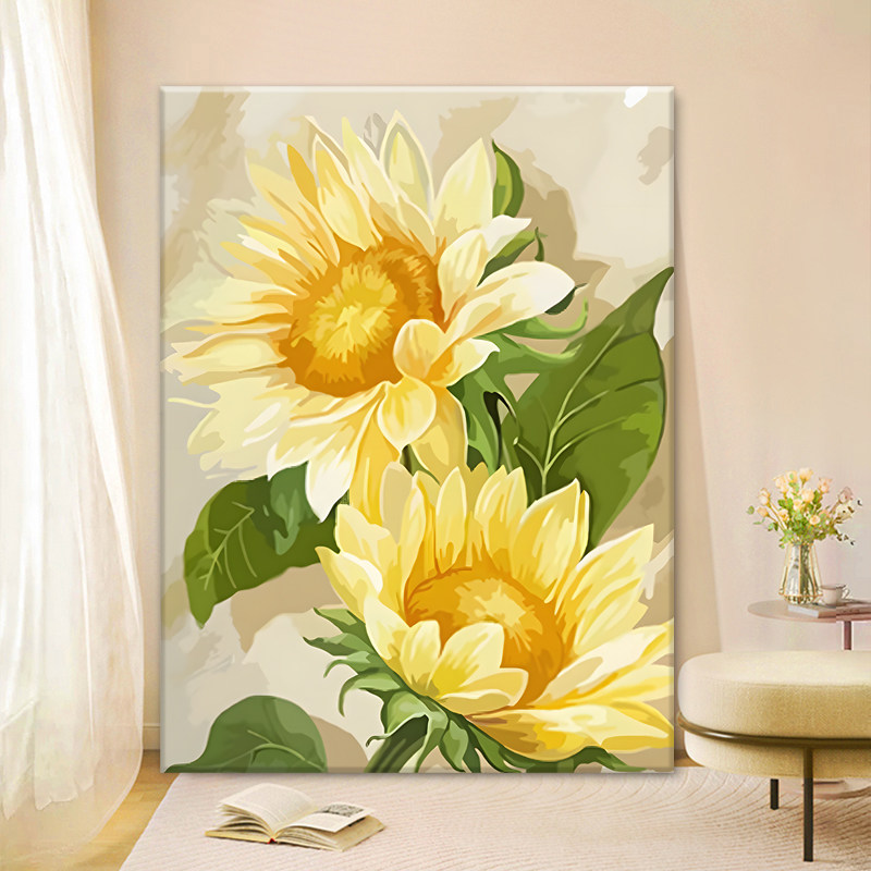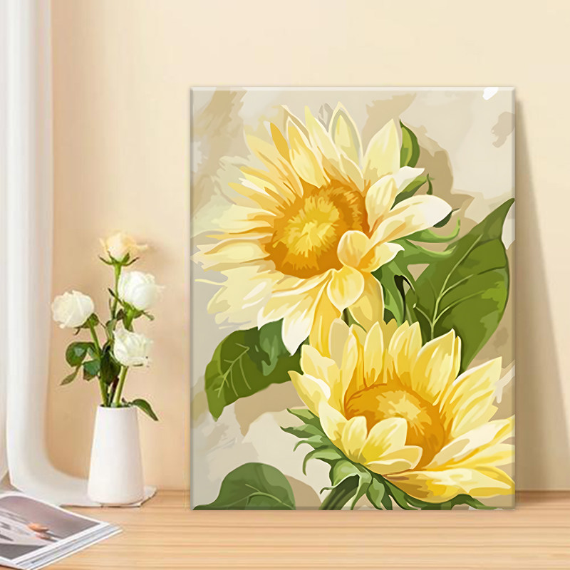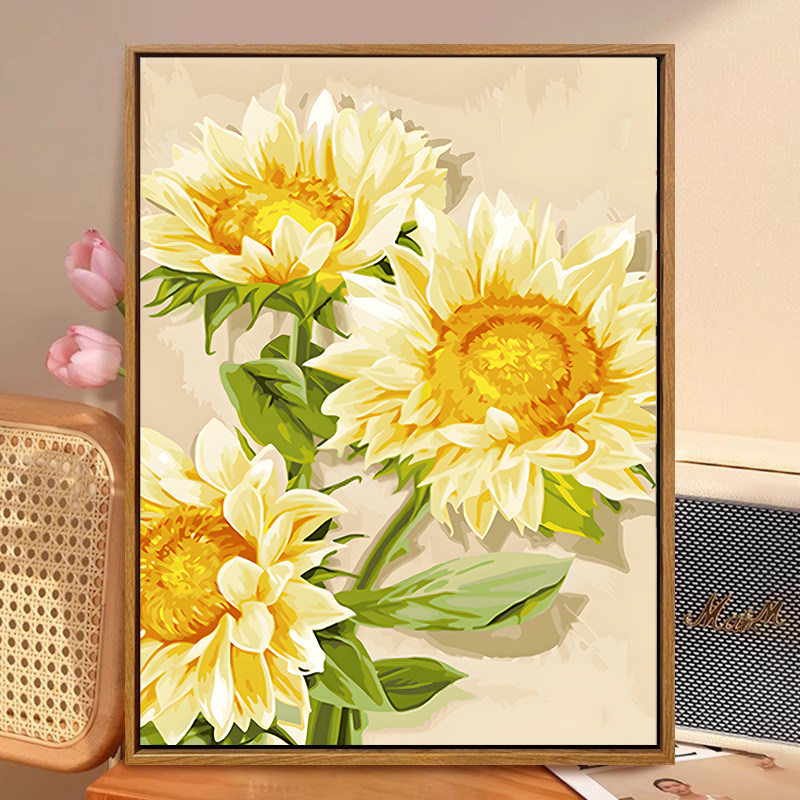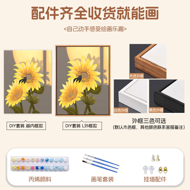 梵高向日葵太阳花diy数字油画手工成人静心治愈丙烯填充色装 饰画
