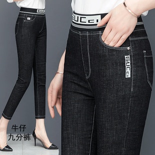 高腰显瘦梨形身材裤 女加绒加厚松紧腰胖MM老爹裤 子 弹力牛仔裤 大码