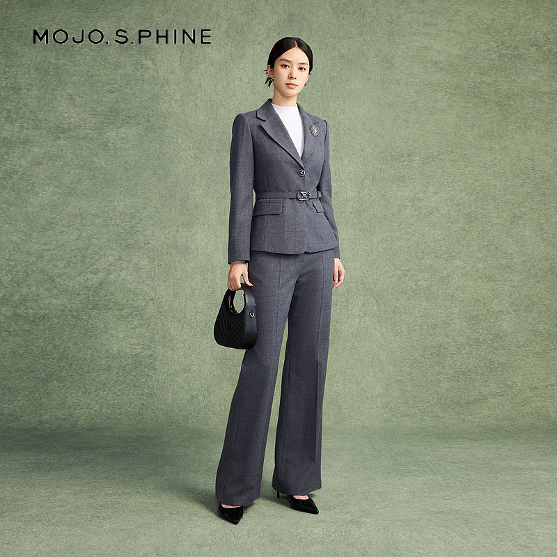 朗姿集团MOJO莫佐格雷系X蜂腰西装 秋冬羊毛混纺通 外套2024年新款