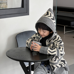 外套 大童宽松衣服男孩开衫 派町童装 儿童连帽毛衣上衣2025秋冬新款