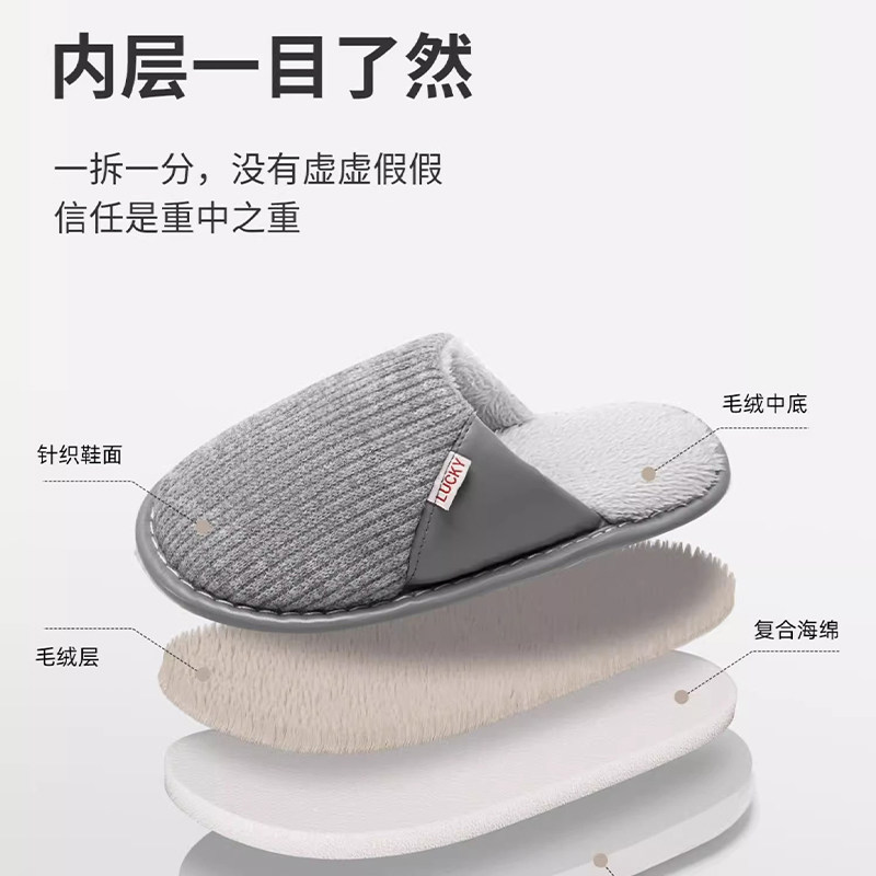 男士 女款 2025新款 室内家居厚底防滑保暖毛绒拖鞋 冬季 踩屎感棉拖鞋