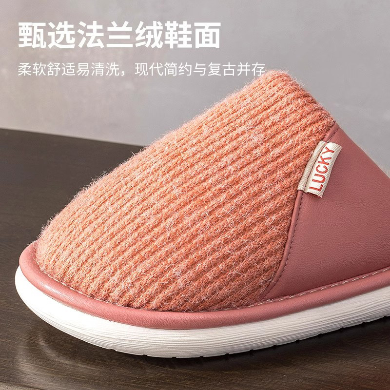 居家包跟保暖防滑月子鞋 男女冬季 ins 情侣可爱小绵羊棉拖鞋 细细条