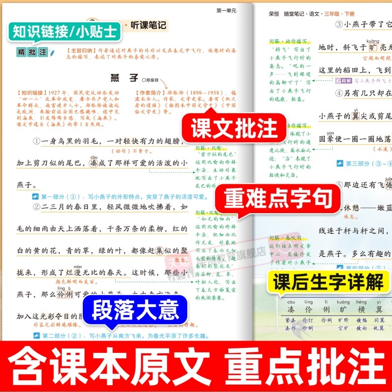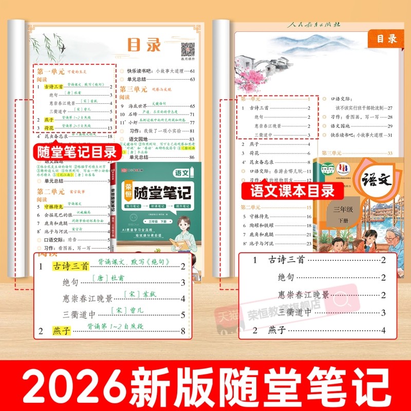 随堂笔记课堂笔记荣恒2026黄冈人教版 预习书三下2025 一二年级三年级上册四年级上五六年级下册小学语文数学英语全套课本教材新版