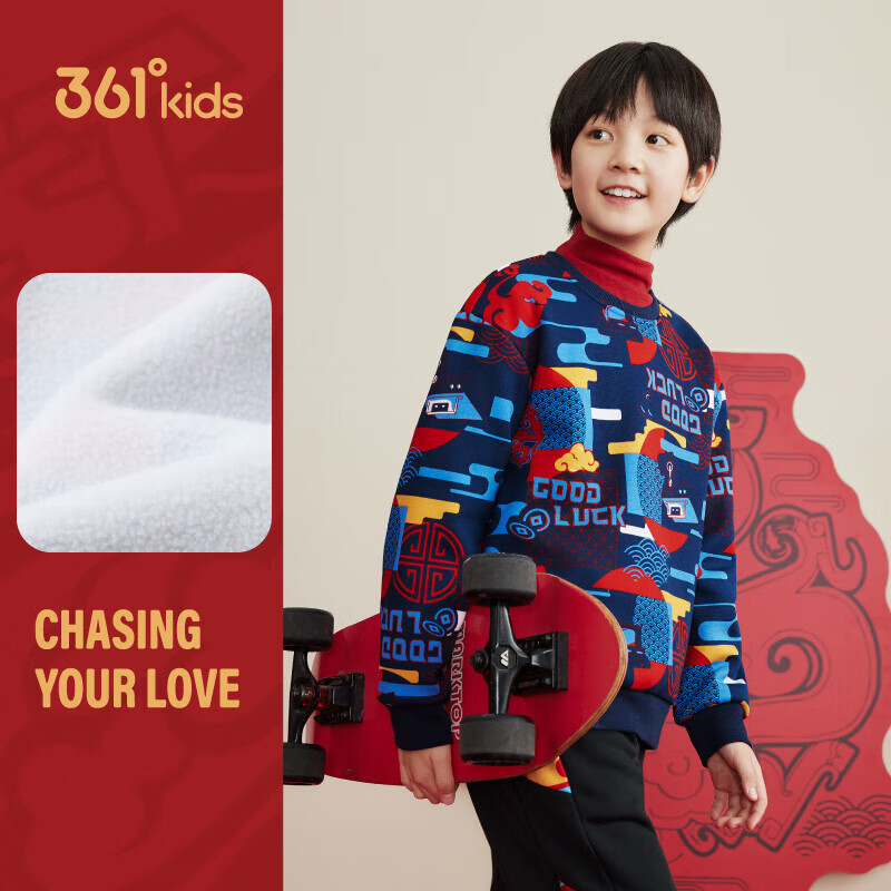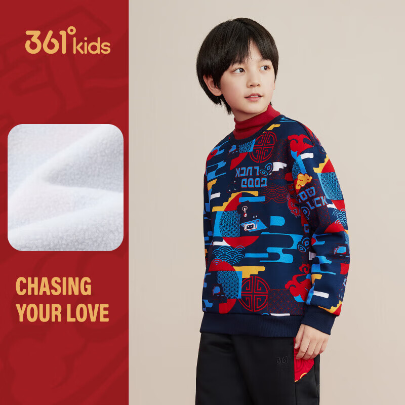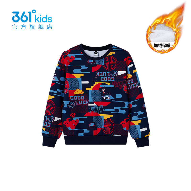 百搭通码 361°童装 时尚 新款 上衣 男童加绒加厚套头卫衣2025年春季