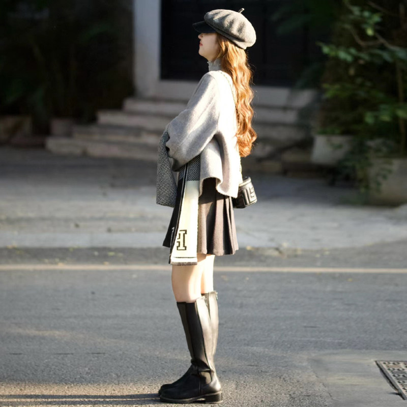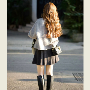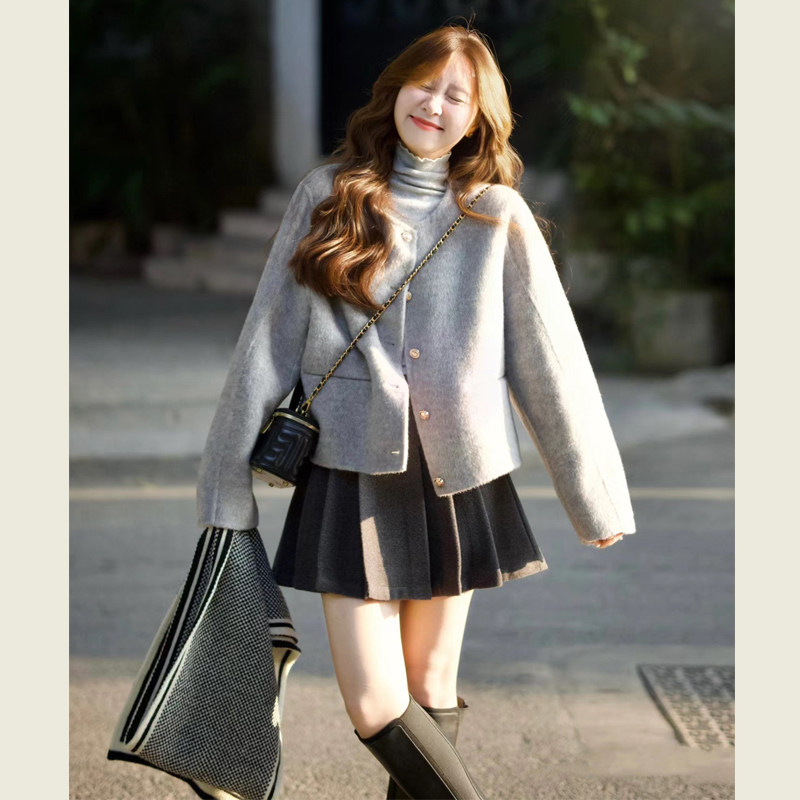 小个子圆领小香风呢子大衣 新款 韩系高级感灰色短款 毛呢外套女冬季