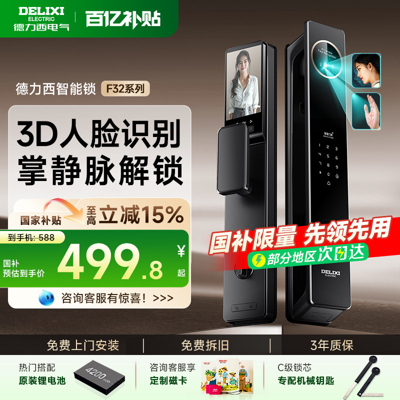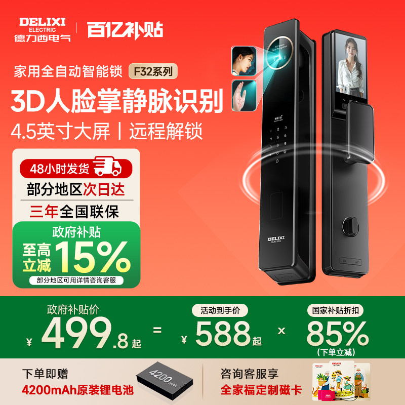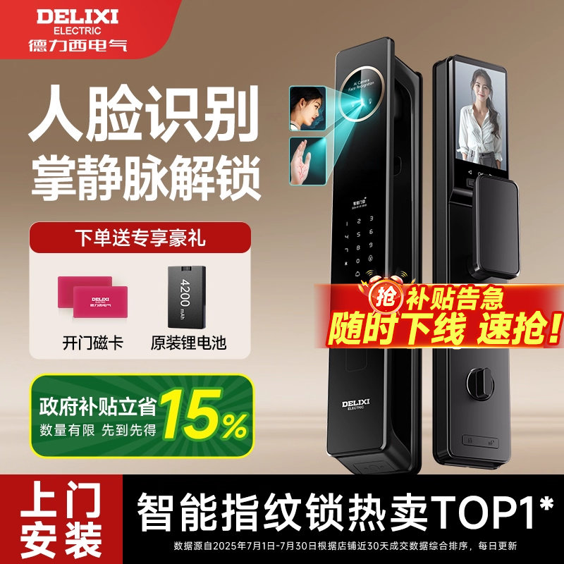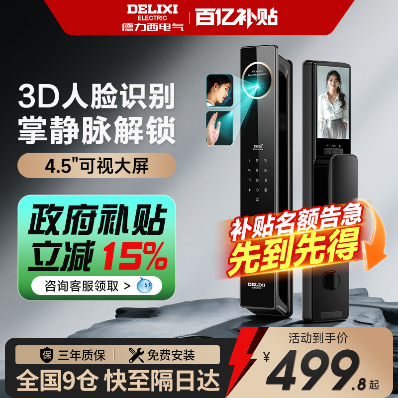 德力西3D人脸识别智能门锁指纹锁家用防盗门入户智能锁电子密码 锁