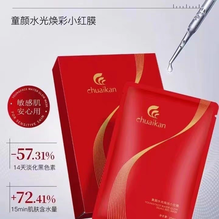 实体店爆品童颜水光焕彩小红膜补水面膜6片装 补水祛黄淡化抗衰
