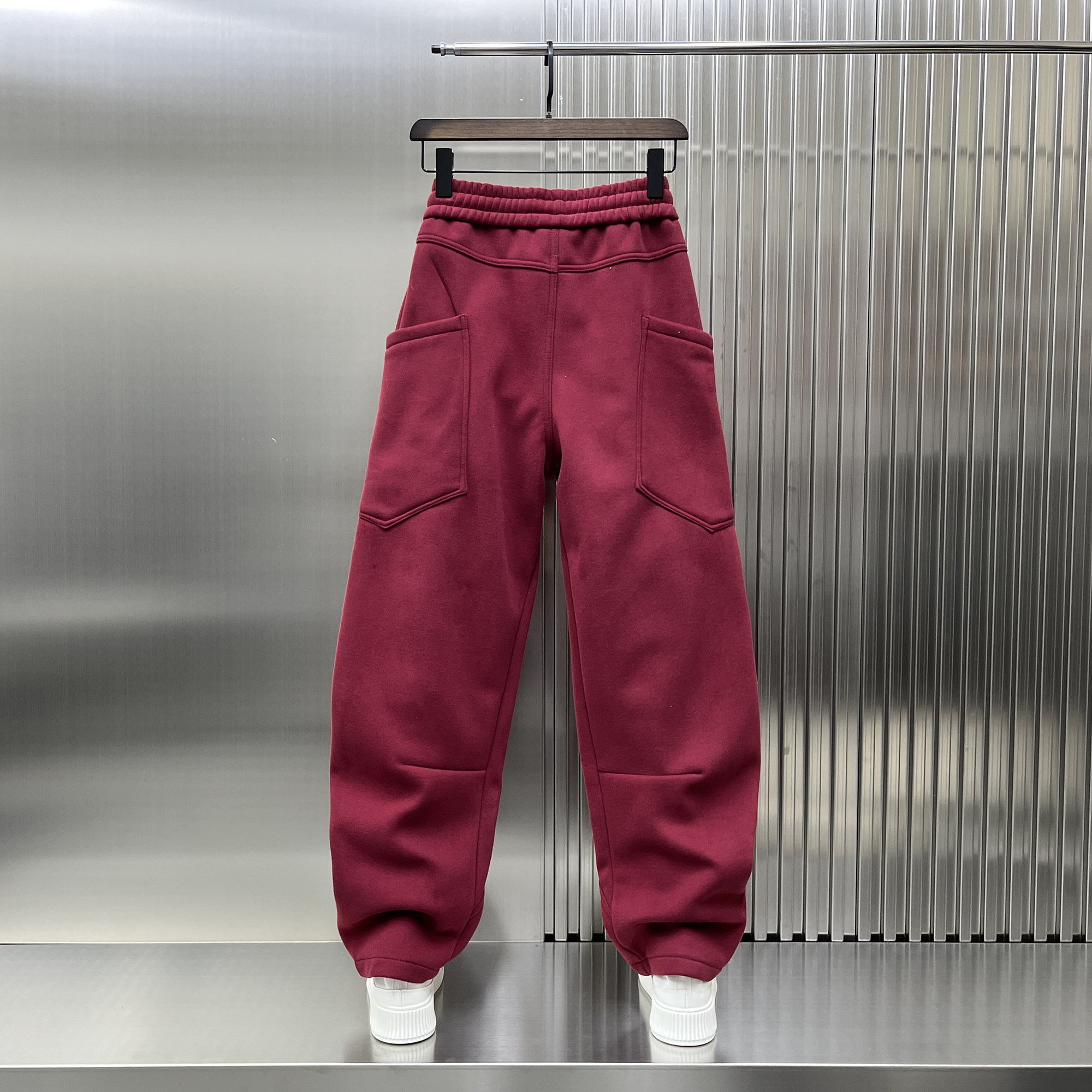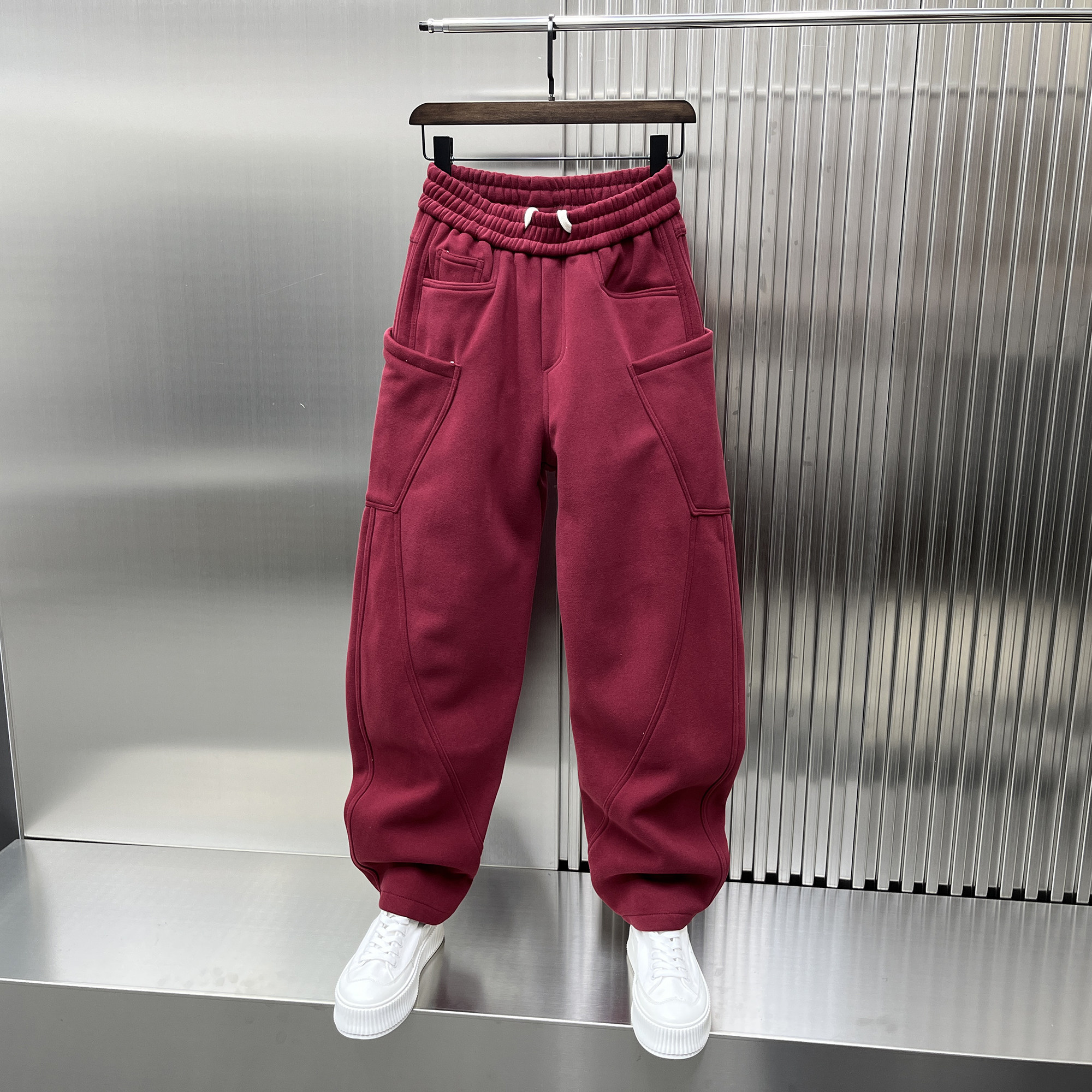 潮牌宽松阔腿直筒长裤 男时尚 安可拉红加绒加厚弯刀裤 2024秋冬新款