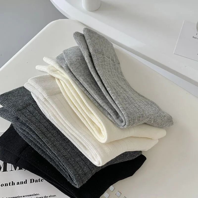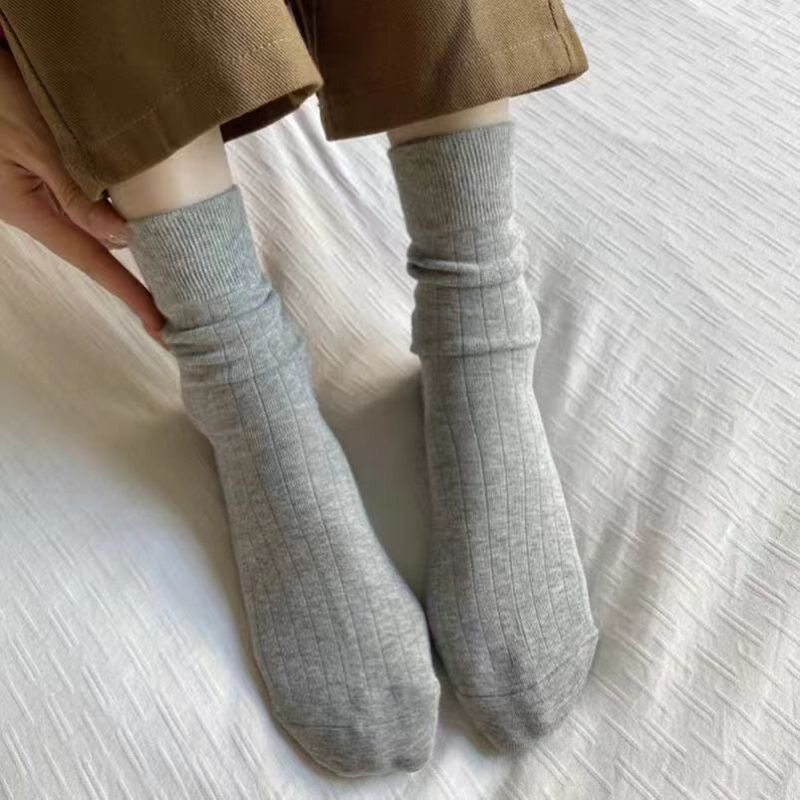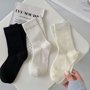 日系袜子女ins潮中筒袜百搭竖条纯色时尚 显瘦堆堆袜外穿长袜学生