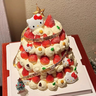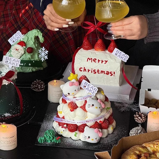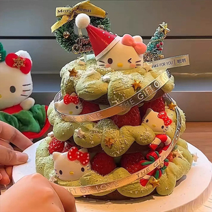 2026圣诞节KT猫蛋糕装 扮插件 饰雪花亚克力珍珠链节日甜品烘焙装