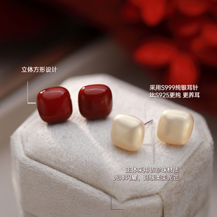 珍珠耳钉女士纯银999纯银耳钉新款 大澳白珍珠耳钉珍珠耳环女耳饰