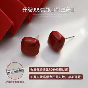JXRXs999纯银爱心耳钉女设计感小众养耳洞耳环独特漂亮足银耳饰