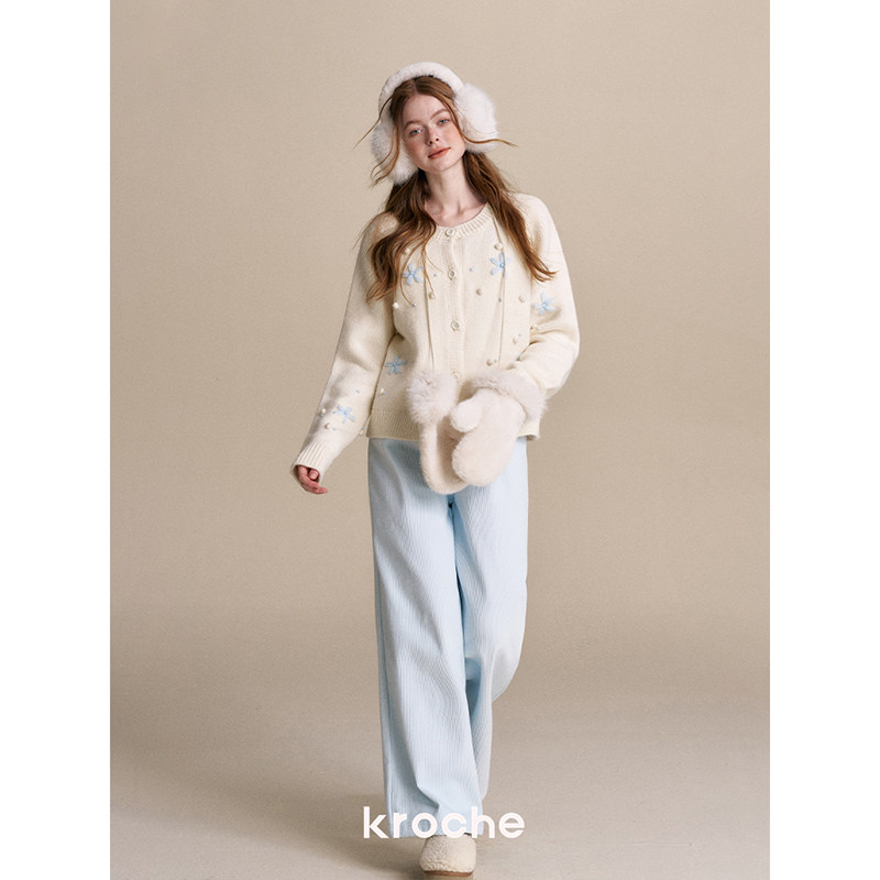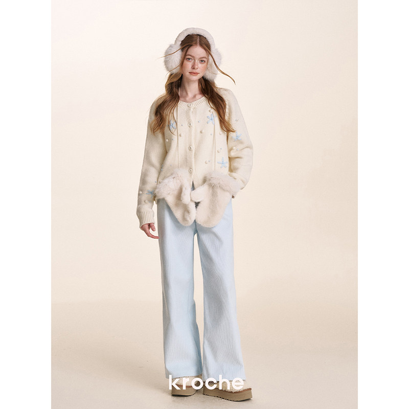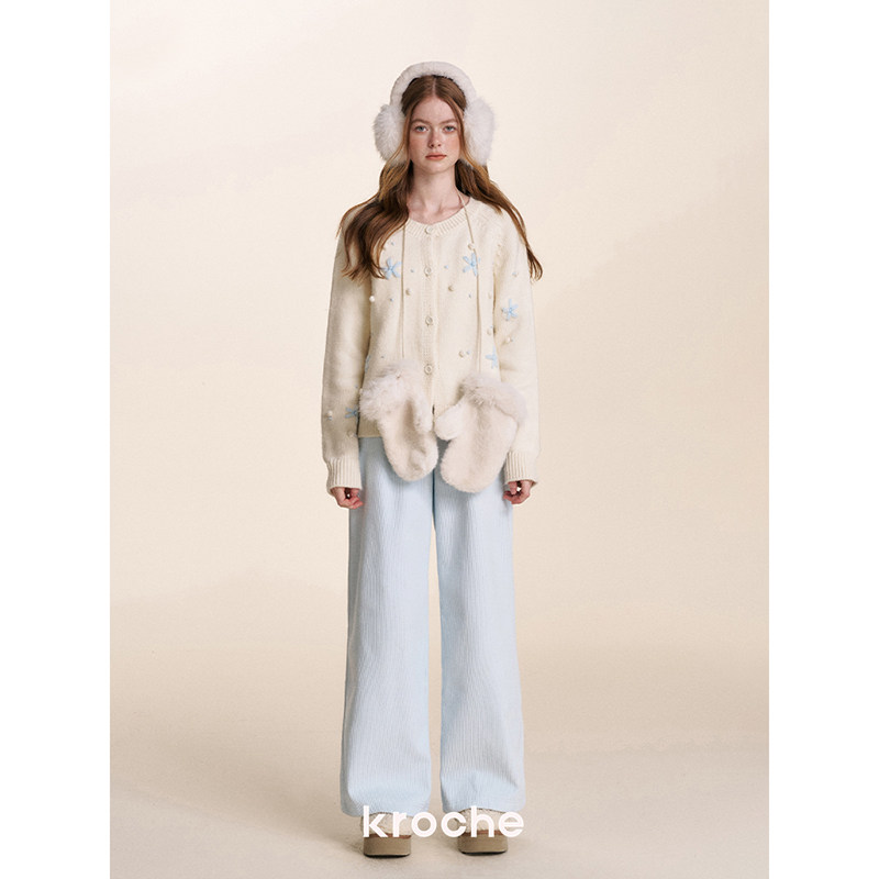 灯芯绒保暖高腰直筒阔腿休闲长裤 过冬加绒 冬日薄雾 Kroche