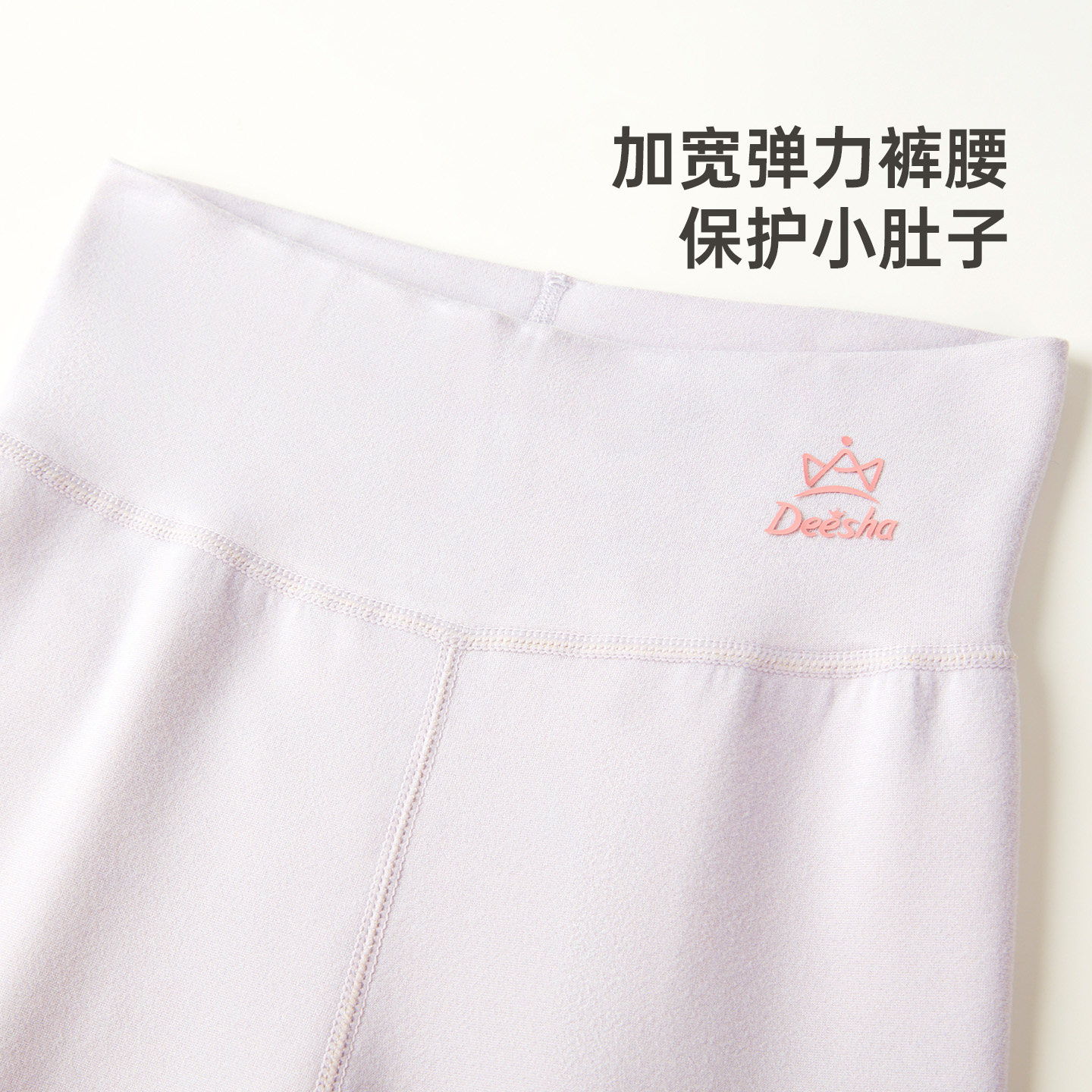笛莎含羊毛蚕丝儿童高腰护肚保暖裤 加厚打底 女童双面磨绒打底秋裤
