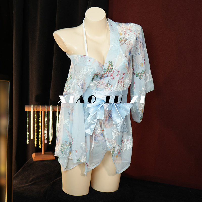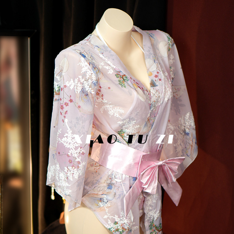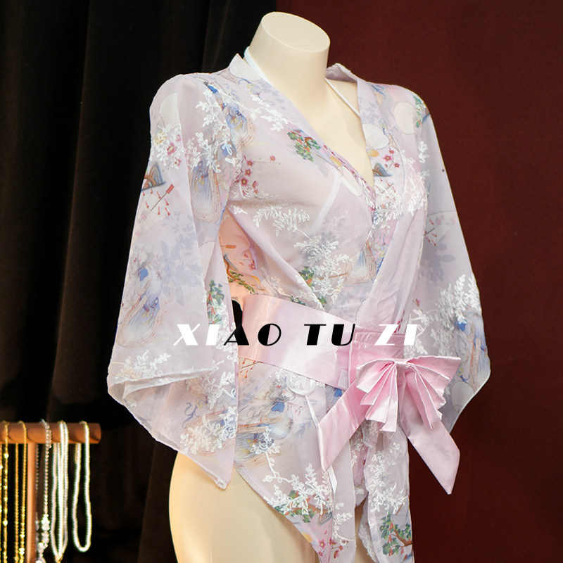 小兔子 和服雪纺睡袍和服两件套睡裙高级感 性感睡衣女薄款