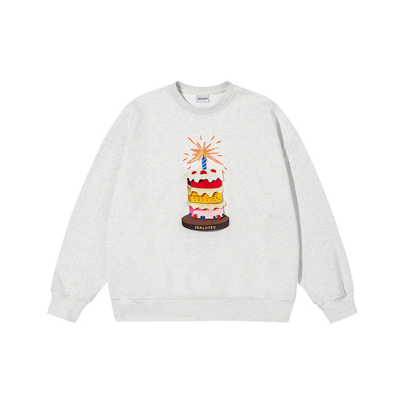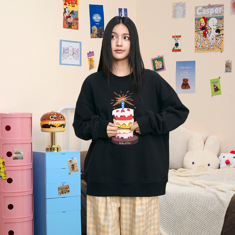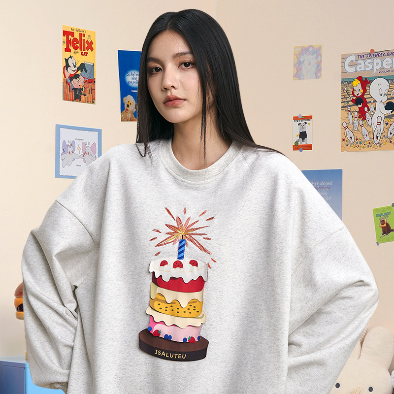 iSaluteU蛋糕布标立体分层圆领卫衣情侣潮牌秋上衣 明星同款
