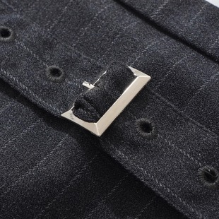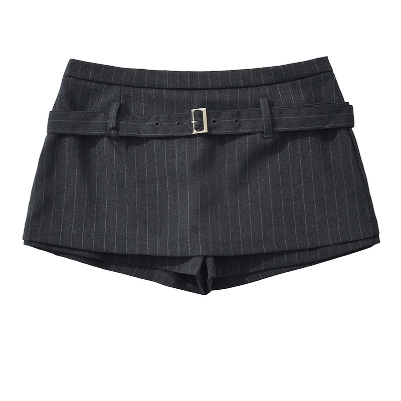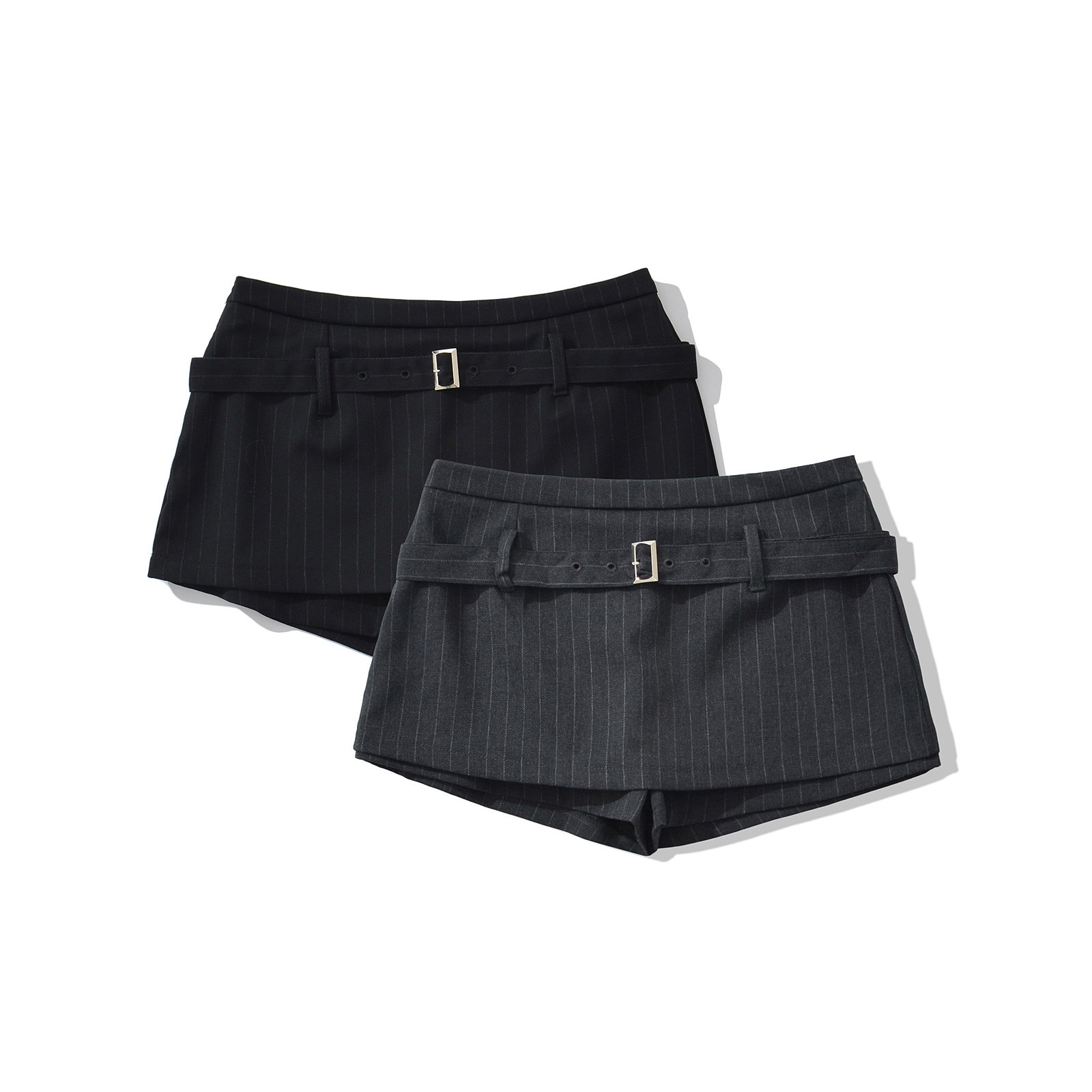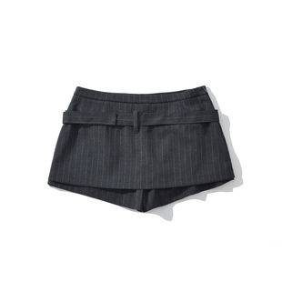 女 裙裤 长腿比例2.0条纹复古简约显瘦休闲短裤 假两件双层半身西装