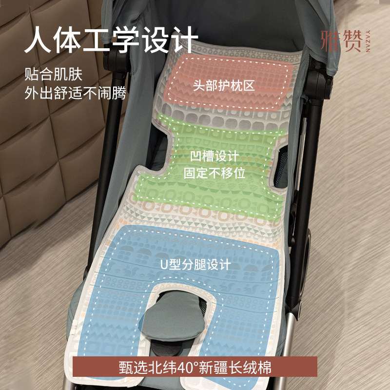 雅赞推车坐垫婴儿车软席垫子透气遛娃神器夏季 安全分腿座椅通用