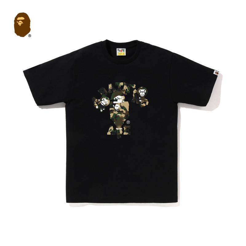 BAPE男装 T恤X07101O 25年春夏涂鸦风猿人地图迷彩猿人字母短袖