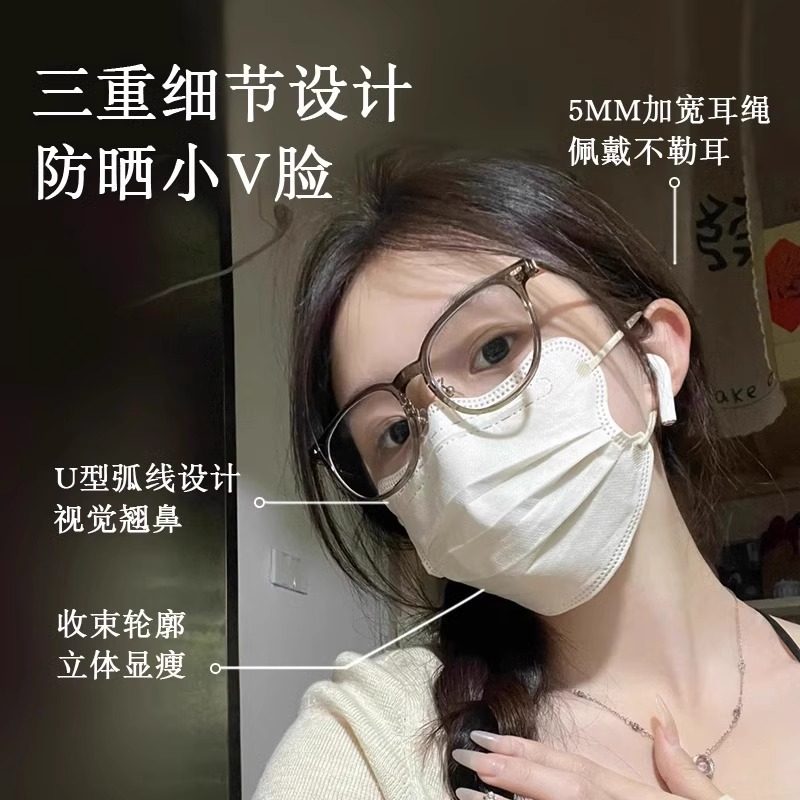 一次性v脸口罩女高颜值蝴蝶莫兰迪护眼角口罩显脸小防护薄款 透气