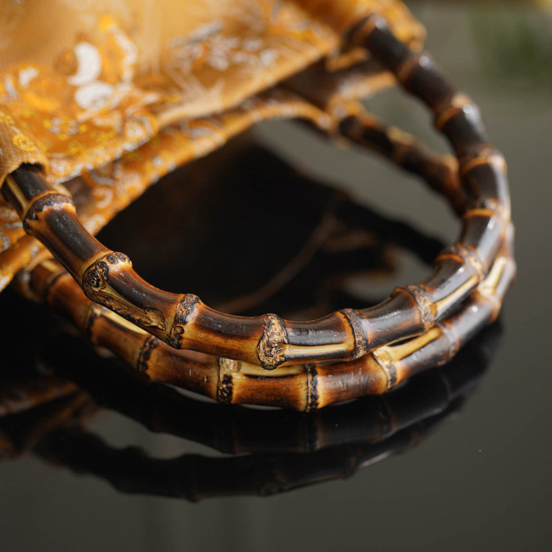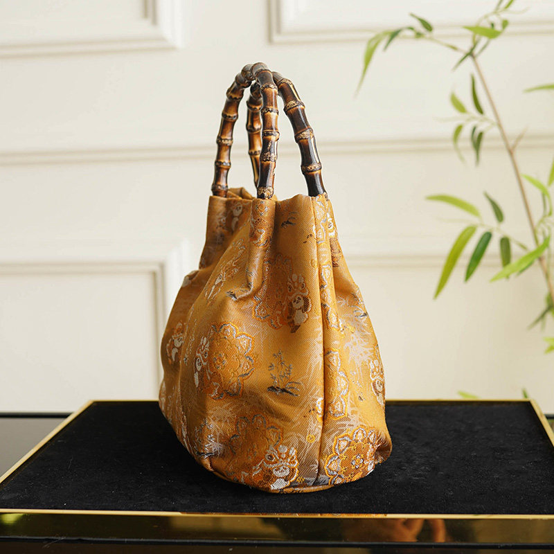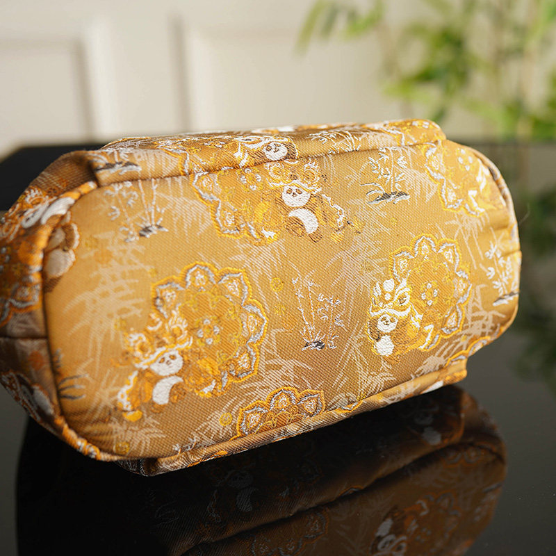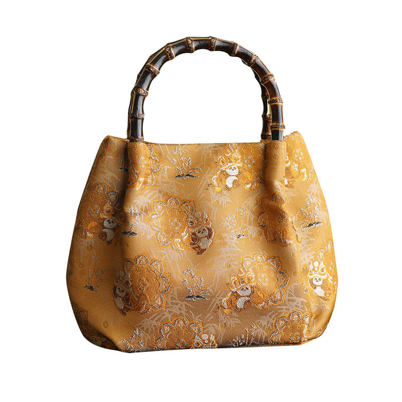 熊猫舞狮 金色小众手拎包 重磅宋锦非遗真丝竹节包手提包国风中式