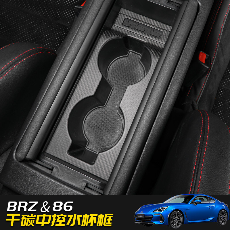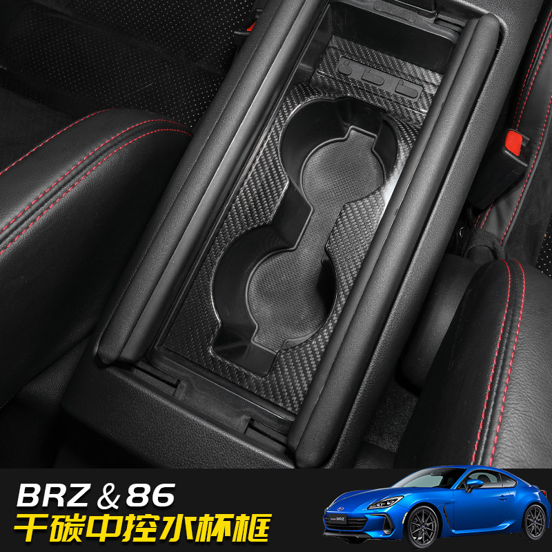 饰贴碳纤维内饰改装 丰田86中控水杯茶杯框装 斯巴鲁brz 适用于22款