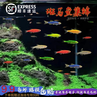 大号七彩斑马鱼热带鱼淡水鱼活体观赏鱼糖果鱼荧光斑马鱼渔场直销